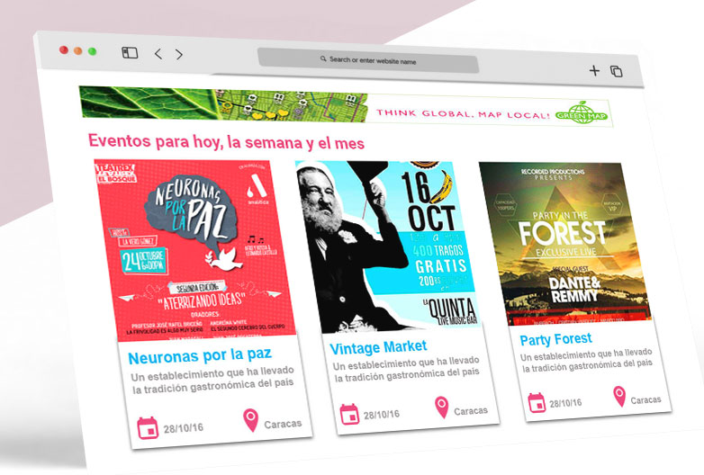 Para este proyecto desarrollamos una experiencia donde los usuarios pudieran encontrar sus eventos a traves de un calendario y conocer mucho más de ellos con reseñas escritas por el personal de HQH de esta manera los usuarios pudieron contar con una fuente confiable de información y estar mas enterados del movimiento cultural en sus ciudades.